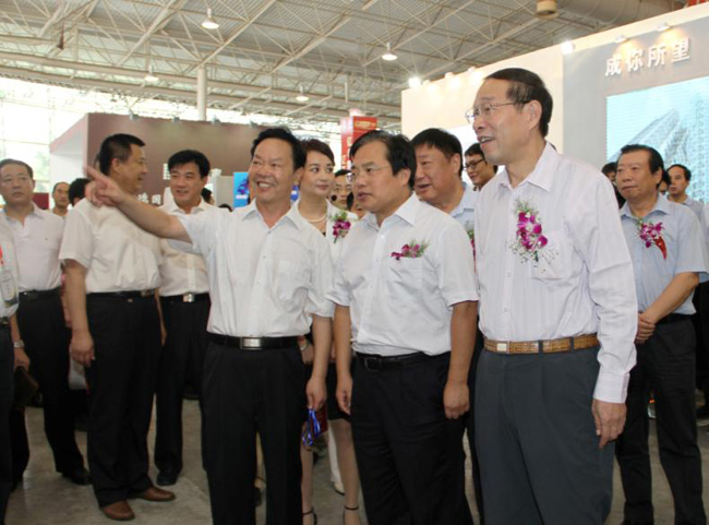 2010年9月住博会上建设部副部长刘志峰等领导与集团董事长卞学祥亲切交流