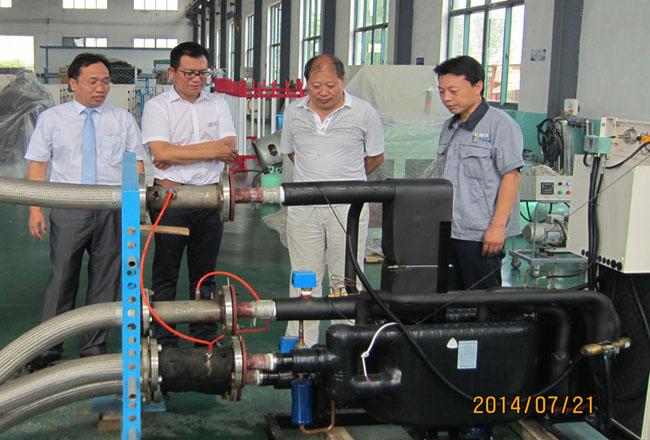 2014年7月21日,天津大学王一平教授考察北海新能源集团地源热泵生产车间