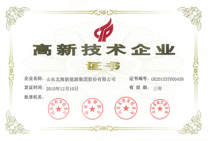 热烈祝贺山东北海新能源集团股份有限公司获得高新技术企业证书